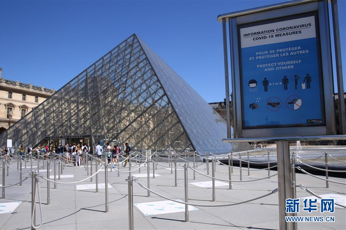 8月7日,法国巴黎卢浮宫博物馆外竖立着关于防疫卫生须知的标识牌。 法国政府网站7日公布的数据显示,法国累计新冠确诊病例197921例,过去24小时新增2288例,创下自5月30日以来最高单日增幅。 新华社记者 高静 摄