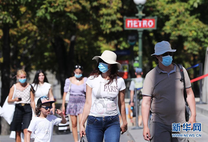 8月7日,人们戴着口罩走在法国巴黎街头。 法国政府网站7日公布的数据显示,法国累计新冠确诊病例197921例,过去24小时新增2288例,创下自5月30日以来最高单日增幅。 新华社记者 高静 摄