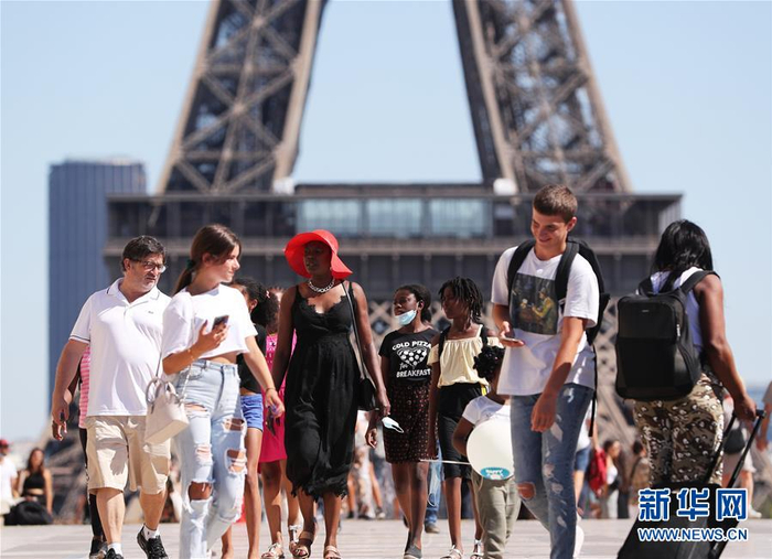 8月7日,人们走在法国巴黎特罗卡德罗广场。 法国政府网站7日公布的数据显示,法国累计新冠确诊病例197921例,过去24小时新增2288例,创下自5月30日以来最高单日增幅。 新华社记者 高静 摄