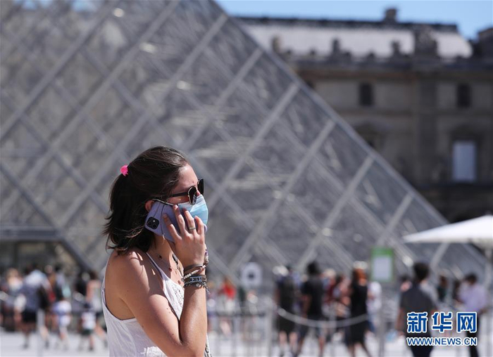 8月7日,一名女子经过法国巴黎卢浮宫博物馆的玻璃金字塔。 法国政府网站7日公布的数据显示,法国累计新冠确诊病例197921例,过去24小时新增2288例,创下自5月30日以来最高单日增幅。 新华社记者 高静 摄