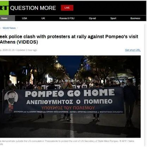 RT:希腊警方与反对蓬佩奥访问雅典的集会上的抗议者发生冲突