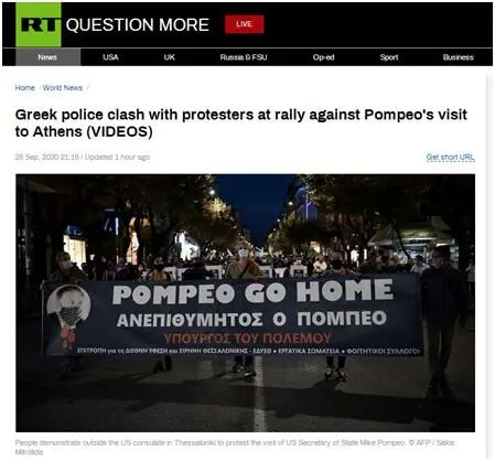 “蓬佩奥不受欢迎!”“美国佬,滚回家去!”据“今日俄罗斯”(RT)报道,当地时间28日,美国驻希腊使馆外爆发冲突,数百人走上雅典和塞萨洛尼基街头,高喊着口号,抗议美国国务卿蓬佩奥的到访。