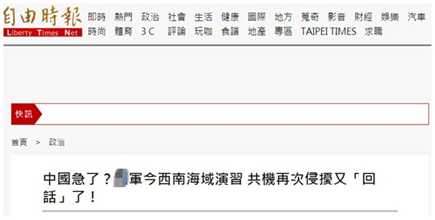 绿媒《自由时报》对此又进行炒作,还在报道标题中声称“中国急了?”除此之外,该媒体还提到,在同一时间点,巴士海峡周边还有一架美国空军KC-135空中加油机,以及一架解放军空警-500军机巡航。