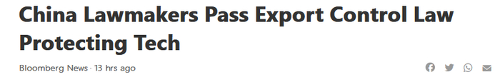 在彭博社看来,《出口管制法》将进一步充实中国监管法律武器,扩大中国的政策选项。