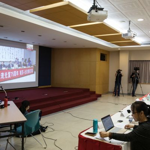 两岸团体共同纪念台湾光复75周年。这是网络视频连线座谈会台北现场(10月18日摄)。新华社彩色通稿