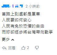 在蔡英文脸书的评论区,有网民留言称,“这让人不安引擎声可是你造成的!安心?说鬼话骗民众真的是你的专长耶。”↓