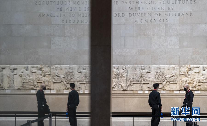 8月25日,一名工作人员在英国伦敦的大英博物馆举行的媒体预展上观看展品。 因疫情关闭数月的大英博物馆将于8月27日重新对公众开放。 新华社记者 韩岩 摄