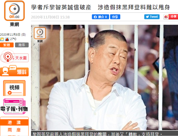 黎智英抹黑拜登后又改口风,学者批:政治投机者,涉抹黑一事恐难以脱身
