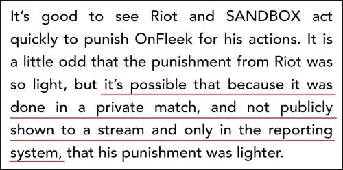 EsportsTalk分析认为,Riot Games方面对于歧视性言论和行为的处罚力度一直很强,不过此番开罚有可能是因为金长谦的不当言论发生在私人比赛中,而非专业的公开赛事,而且也只在举报页面上展现,影响范围有限。