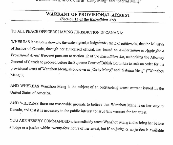 对孟晚舟的逮捕令上有明确的“立即逮捕”的要求,但是警方却多次改变逮捕的地点和时间