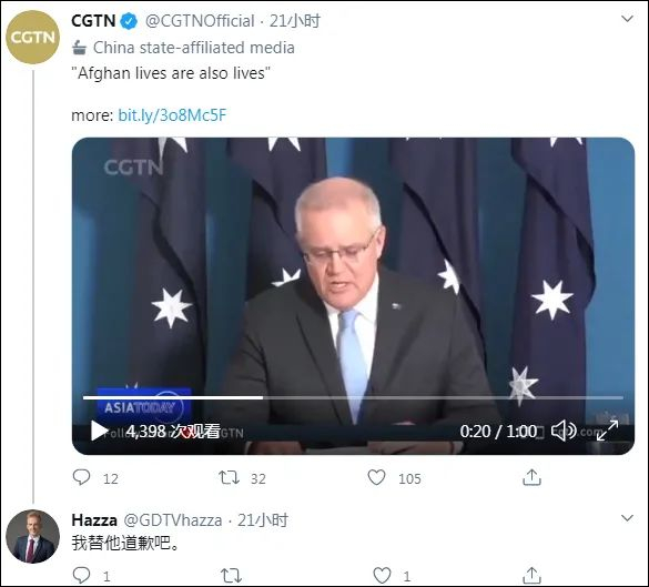 Hazza还在CGTN新闻下说要“替他道歉”。