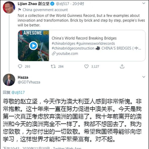 昨晚,中国外交部发言人赵立坚推文下出现这样一条留言,使得澳总理莫里森要求中方道歉一事显得尤为可笑。