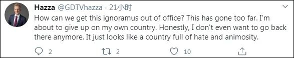 Hazza留言说:“我们怎样才能把这个无知的人赶下台呢?这太过分了。我要放弃我的祖国了。老实说,我都不想再回去了。它看起来就像一个充满仇恨和敌意的国家。”