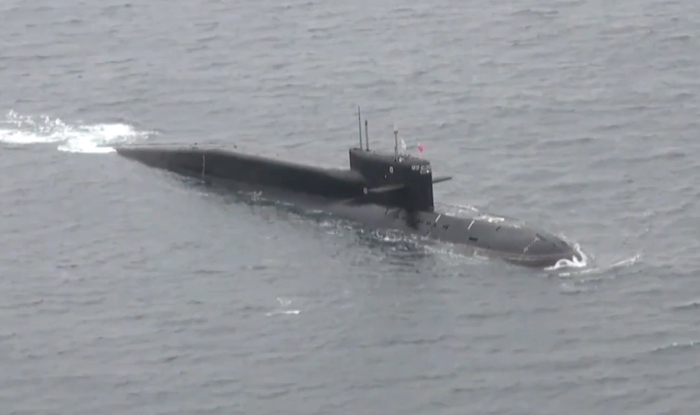 俄罗斯国防部公布的画面显示,普列塞茨克航天中心发射的是“亚尔斯”弹道导弹,携带“蓝天”导弹的667BDRM“卡累利阿”号战略核潜艇参加了潜射导弹发射训练。