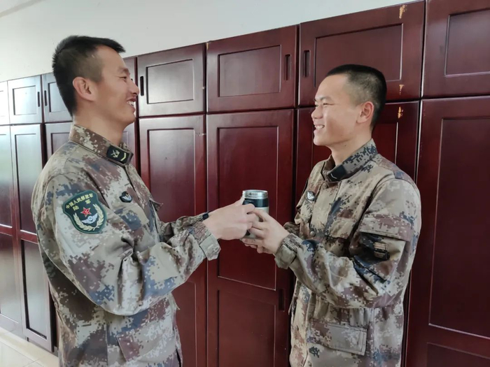 一桶热水洗去的不仅是新战友的舟车劳顿,更是新战友们来到陌生环境的彷徨与不安;一杯热茶驱赶的是冬天的寒气,带来的是兄长般的暖意。班长兄长般的关怀,温暖着每一名新战友。