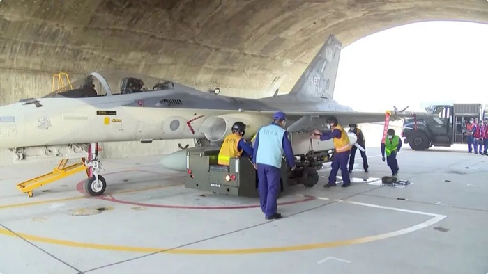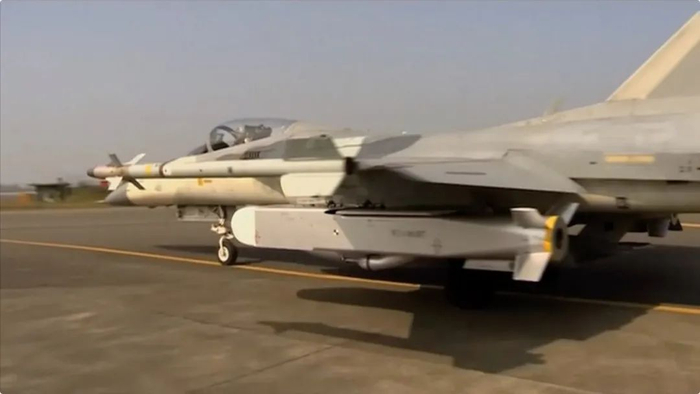 本次演练,台军还首次在媒体前公开了“万剑弹”实弹挂载演练项目。 由地勤人员利用取弹车取下“万剑弹”,并挂载在IDF机翼两侧,过程必须相当小心,避免对弹体、机身造成影响。