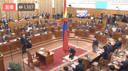 当地时间1月29日,蒙古国政府新总理罗布桑那木斯来·奥云额尔登在蒙古国国家大呼拉尔(议会)全体会议上介绍新政府的16名成员,并予以任命。全体政府成员在国家宫举行宣誓就职仪式。