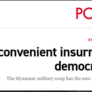 Politico将缅甸政局动荡称为一场“不方便的叛乱”,报道截图
