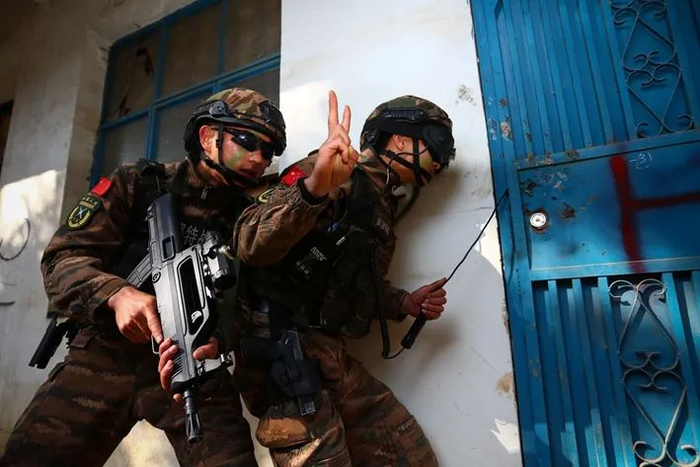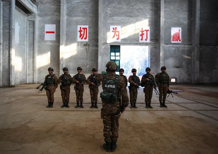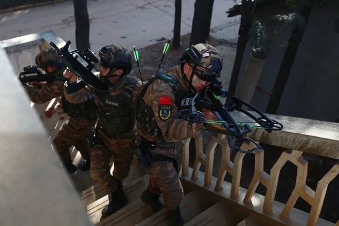 “嘟嘟嘟......”一阵短促的紧急集合哨响起,“接上级通报,现有两名恐怖分子抢劫某银行后,劫持一名人质向我部南侧废弃居民楼逃窜,上级命令我部立刻展开处置”。接到命令后,特战队员们分为突击、侦察、狙击三个小组,迅速出动,搜寻“恐怖分子”藏匿地点。