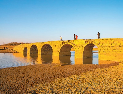 近日,江西省九江市湖口县双钟镇鄱阳湖底五眼桥成为人们冬季旅游的“网红”打卡地,吸引游客纷至沓来。张 玉摄(人民视觉)
