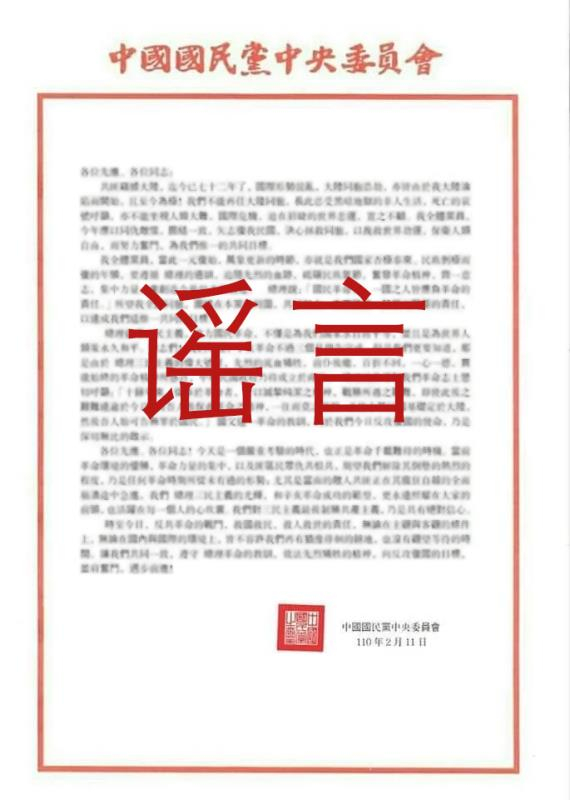 原标题:“国民党中央委员会”发函要反攻大陆?!国民党紧急澄清:不实!