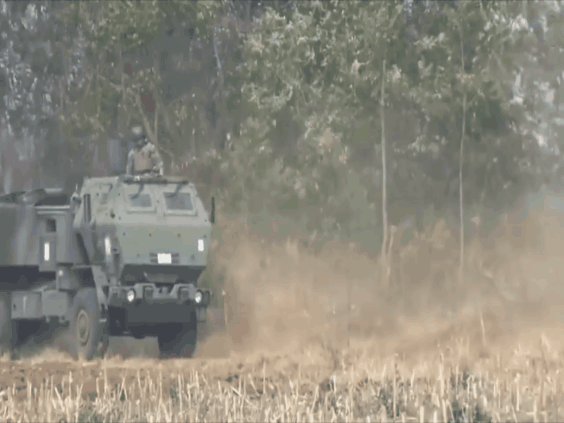 美陆战队“海马斯”远火在泰国境内机动并实弹打靶动态图。