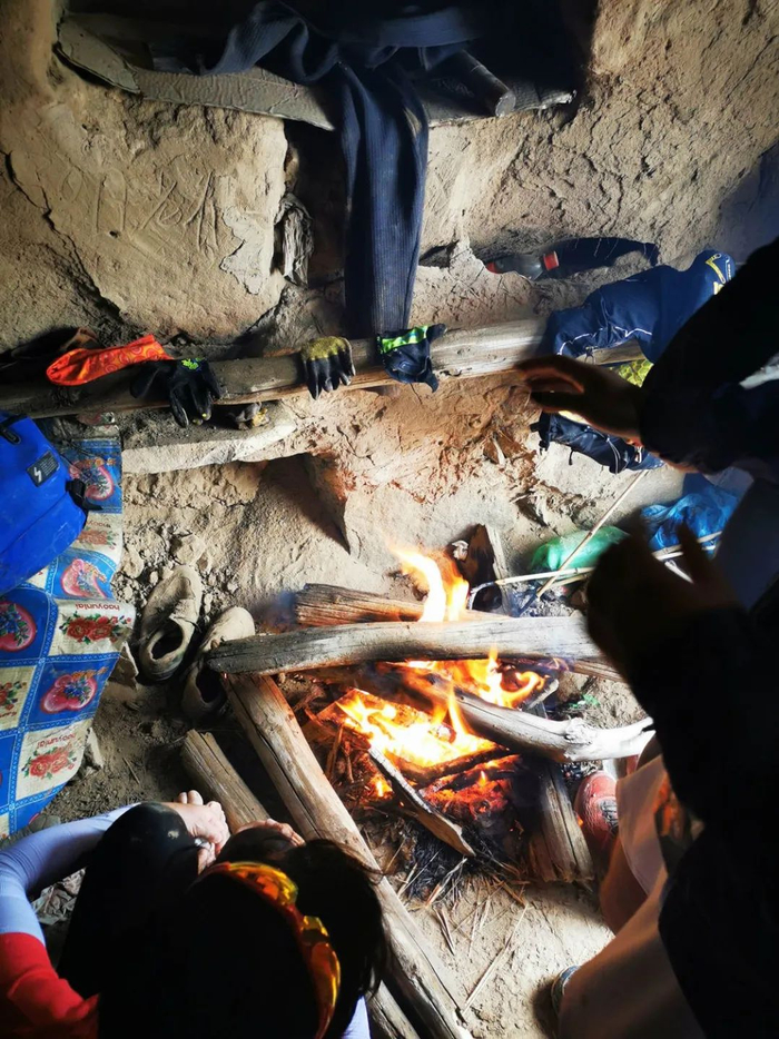 朱克铭先是听到了求助声,循声走出窑洞,他看到一群越野赛选手中有一位已经在抽搐。他把大伙带到窑洞,又生起了几堆火。