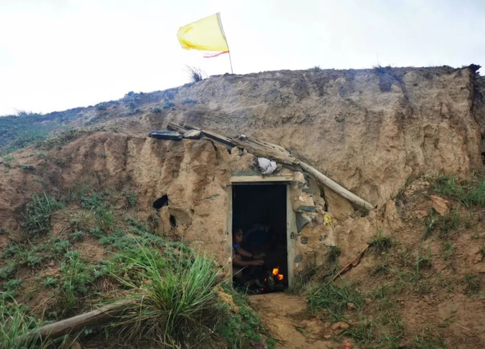 10点多,天开始下雨,气温越来越低。在当地一个被称作朱家窑的地方,朱克铭停下来,去了以前生产队用过的窑洞。他总在那一片区域放羊,之前还在窑洞里放了衣服、被褥和干粮。