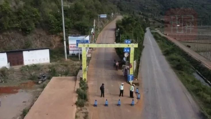 交警在村口进行布防和交通管制