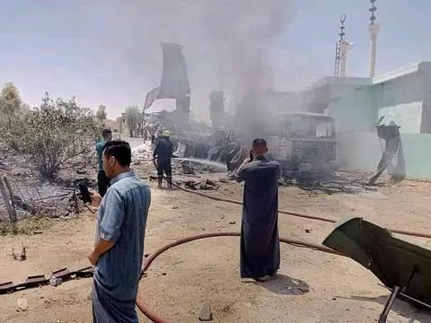 伊拉克安全部门开展调查后,在基地附近农田发现一辆货车,该车以装载面粉为掩护,藏匿了一个火箭弹发射平台,袭击基地的14枚火箭弹都是从这辆货车中发射的。现场照片显示,剩余未发射的火箭弹也被引爆并引发火灾,对附近的居民房屋与建筑造成破坏。