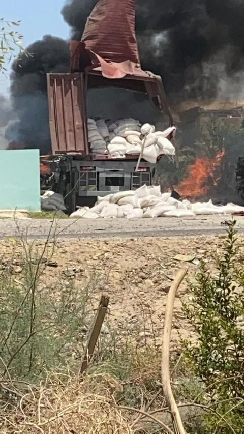 ▲拉面粉的货车,发射火箭弹后起火