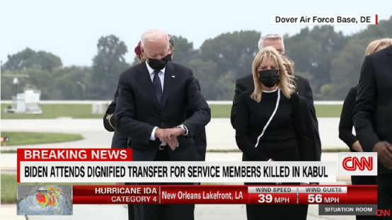 喀布尔阵亡美军士兵遗体交接仪式上 拜登竟低头看表