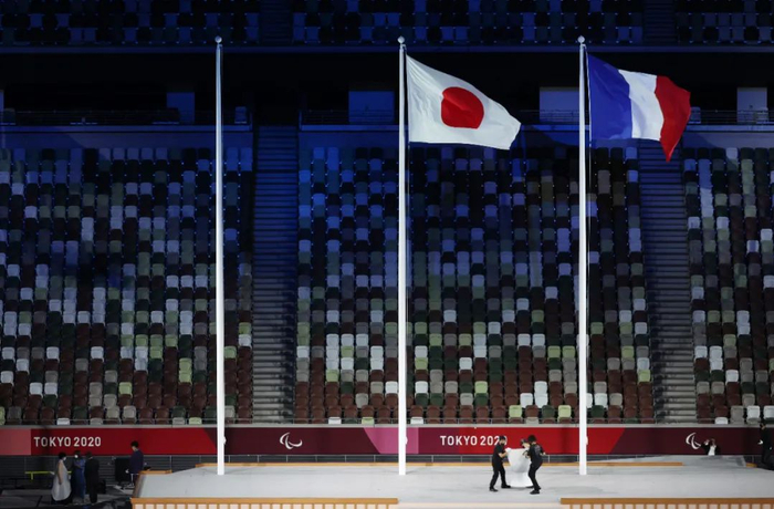 当地时间2021年9月5日,日本东京,2020东京残奥会闭幕式,残奥会会旗交接仪式进行。
