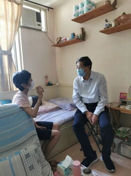 在看望东涌逸东邨公屋住户梁女士时,中联办副主任罗永纲了解到,今年74岁的老人独居东涌超过10年,早年在九龙亚皆老街从事国标舞教学工作,现退休在家靠领取综援生活。由于健康状况不佳,每周都要去医院检查复诊。