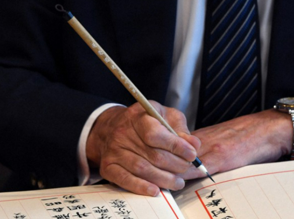 28日,事件在国内互联网上发酵开,宫内厅用毛笔记录的一幕也以照片的形式四处传播。很快,大家就把目光聚焦到笔杆“选毫圆健苏州湖笔厂”的字样上。