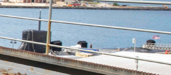 这是事故后一直处于严格保密状态下的“康涅狄格”号首次露出真容。从这张照片上看,潜艇的上半部,尤其是指挥塔部分没有任何明显的损坏,在一定程度上也印证了美国海军的声明——至少碰撞事故没有发生在潜艇最容易受损的上半部。