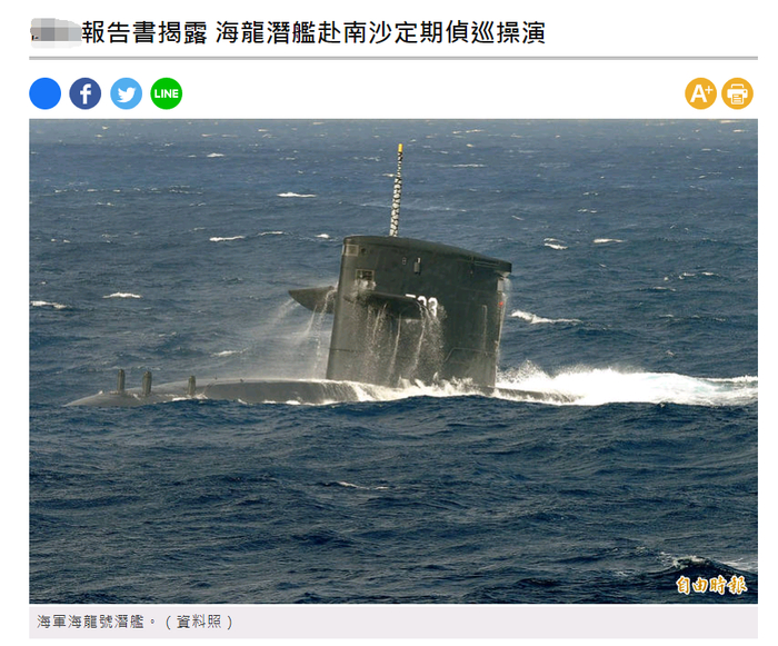 台湾中时新闻网称,这是台湾首次透露派遣潜艇定期执行南沙演习任务。