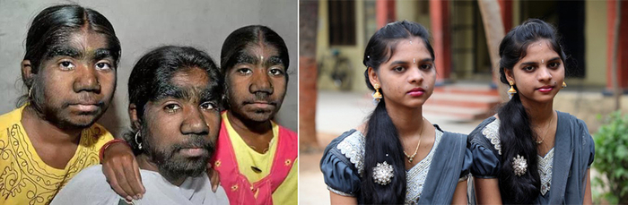 至于第二张图片中的两位女孩其实是一对双胞胎,曾经就读于印度安得拉邦(Andra Pradesh)的一所英语学校(Camford English Medium High School)。《每日邮报》和福克斯新闻曾在2016年对这所学校进行了报道,据称该校在当年招收了28对双胞胎。