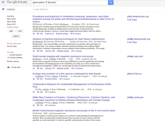 在谷歌学术(Google Scholar)和Web of Science上分别使用“E Bucholz”和“Bucholz E*”检索,能够分别查询到7个和108个结果。但经过核查,这些论文涉及的作者包括Bucholz, Emily M.、Bucholz, Elizabeth K.、Bucholz, Ethan R.、Bucholz, Eric W.和Bucholz, Eleanor I.,5人均与Ernst Bucholz无关。