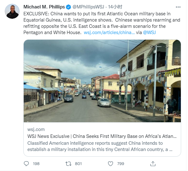 他显然是了解非洲事务的,但他还是这么写了,而结果显示,这篇特稿写得“很成功”,在推特上引起的热度远远高于他的其他作品,大概现在在美国任何与“中国威胁论”沾边的内容都是“流量密码”。