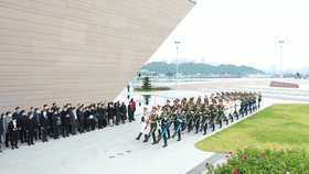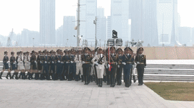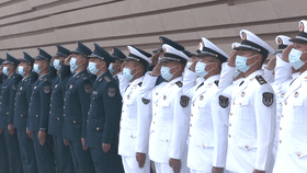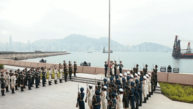 上午9时,来自香港中联办、驻港国安公署、香港特区政府教育局和香港中小学校长代表100多人,与驻香港部队陆海空三军官兵代表共同举行升国旗仪式。