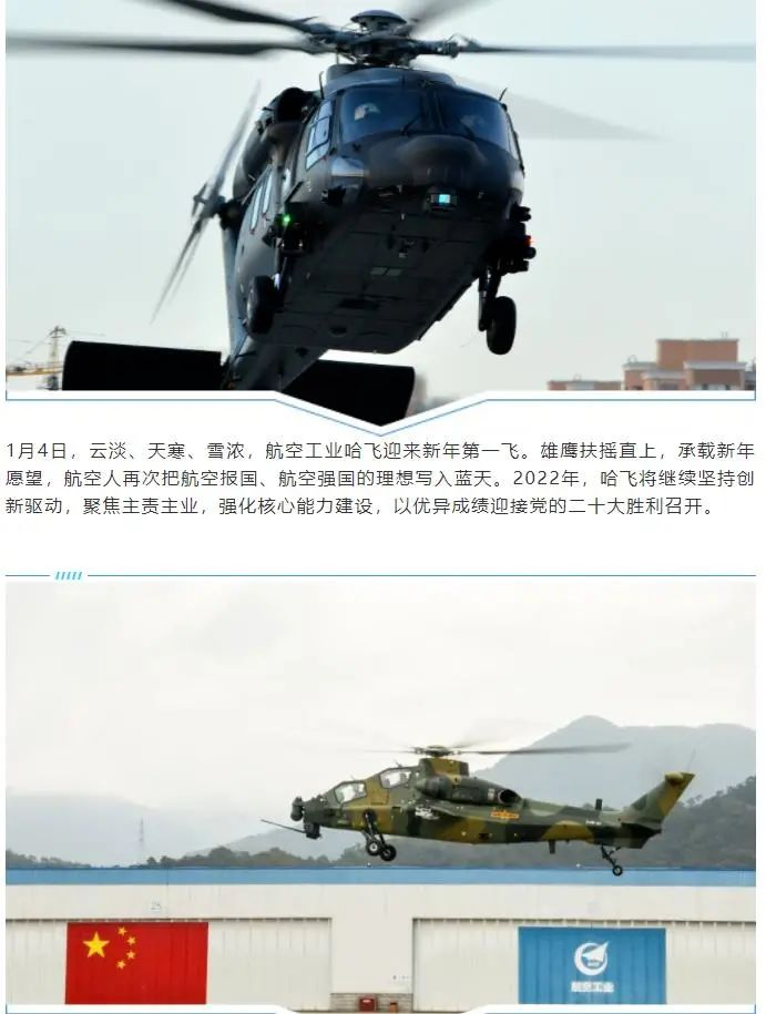 除了固定翼飞机的新年“第一飞”,直升机型号的最新消息也有公布。从公布的画面来看应该是一架武直十、一架直-20。