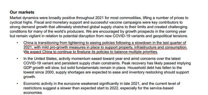 力拓对2022年前景乐观的主要支撑是中国市场。