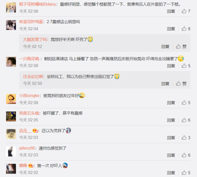 北京朝阳区发生2.7级地震,很多市民表示震感明显