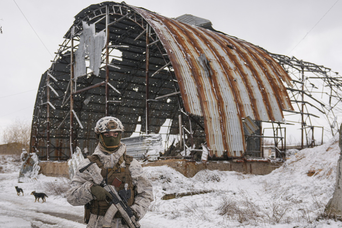 当地时间2022年2月9日,乌克兰顿涅茨克地区,乌克兰士兵在前线阵地站岗巡逻。 人民视觉 图