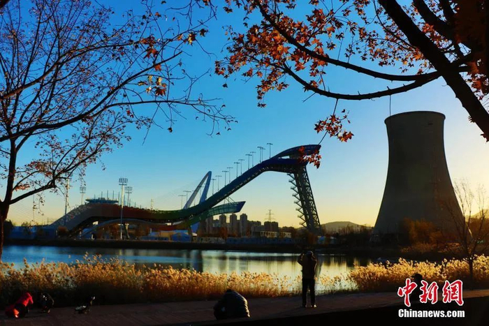 ▲北京冬奥公园紧邻首钢园区,滑雪大跳台与首钢大桥交相辉映。中新社发 牛云岗 摄 图片来源:CNSPHOTO