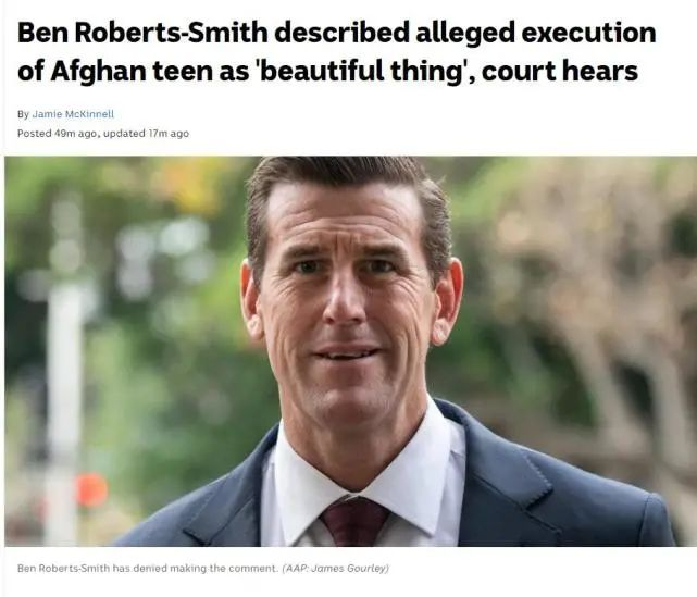 据澳媒报道,本·罗伯茨-史密斯目前正在起诉《悉尼先驱晨报》、《时代报》和《堪培拉时报》等澳大利亚报纸和三名记者,指控他们在2018年发表的一系列文章是对他“进行诽谤”。他否认了自己曾在阿富汗非法杀人、欺凌前SAS战友以及家庭暴力的相关指控。不过,《悉尼先驱晨报》《时代报》的母公司传媒公司九号娱乐公司找来的第三名SAS证人(化名为Person 16“16号人”)则告诉联邦法院,本·罗伯茨-史密斯在2012年被派往阿富汗执行任务时,发表了这番关于阿富汗少年死亡的评论的。