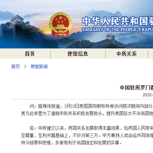 据媒体报道,2月12日美国国务卿布林肯访问斐济期间与部分太平洋岛国领导人视频会晤时,宣布将在所罗门群岛开设使馆。中国驻所罗门群岛使馆发言人13日表示,中所建交以来,两国关系发展取得丰富成果,给两国人民带来了实实在在的好处,符合地区各国共同利益。中所关系发展建立在平等、相互尊重、互利共赢基础上,不针对第三方。中方秉持人类命运共同体理念,太平洋岛国倡导“广交友、不树敌”思想。希望其他国家相向而行,摒弃冷战零和思维,多做有利于岛国稳定和发展的实事。