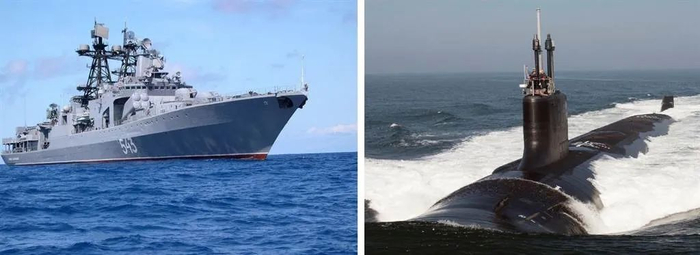 而事件的另一方是“沙波什尼科夫元帅”号驱逐舰。不少媒体错误地将其称为“护卫舰”,其实它属于“无畏”级反潜驱逐舰,排水量高达8000吨,在苏联时代曾与偏重反舰的“现代”级驱逐舰组成“黄金搭档”。俄海军在多年与美国核潜艇的水下“猫捉老鼠”游戏中,积累了丰富的美国核潜艇水下声纹特征,因此作为一款专职反潜驱逐舰,“沙波什尼科夫元帅”号的确能够在美国潜艇没有上浮的情况下,准确识别后者属于“弗吉尼亚”级。
