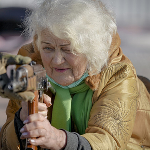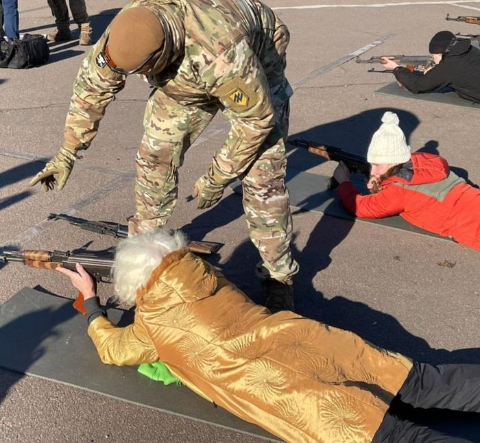 据“今日俄罗斯”2月14日消息,乌克兰当地一些媒体当天公布了一名名为瓦伦蒂娜·康斯坦丁诺夫斯卡(Valentyna Konstantinovska)的79岁老妪在乌克兰东部顿涅茨克州马里乌波尔市(由乌克兰政府控制)接受军事训练的照片,照片中,康斯坦丁诺夫斯卡身着柠檬色外套,趴在瑜伽垫上练习用AK-47突击步枪瞄准。康斯坦丁诺夫斯卡表示,假使俄乌爆发战争,她将拿起武器与俄军作战,以保卫她所在的城市。